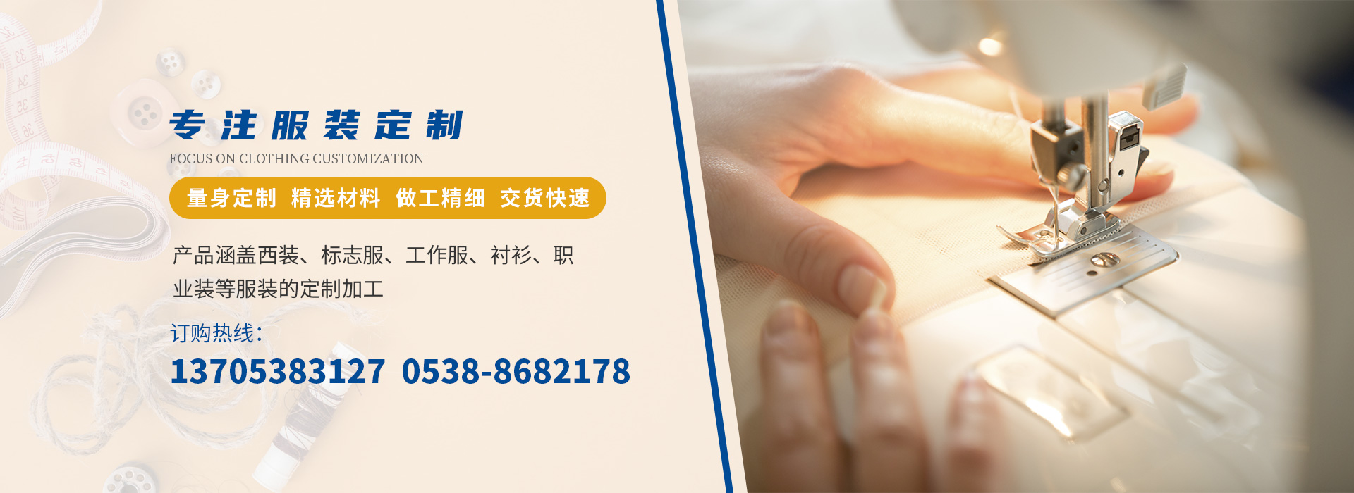 泰安市東岳明珠標志服裝有限公司專注服裝定制多年,產品涵蓋西裝、標志服、工作服、襯衣、職業裝等服裝的定制加工。公司經過多年在服裝領域的執著探索和發展,現已具備完善的管理體系、標準化生產線、優異的貨品質量和過硬的供貨能力,可更好的滿足市場需求,為不同的企業客戶提供到位的產品與服務。泰安市東岳明珠標志服裝始終不懈努力,不斷提高產品質量與服務意識,為顧客提供更好的產品與服務...